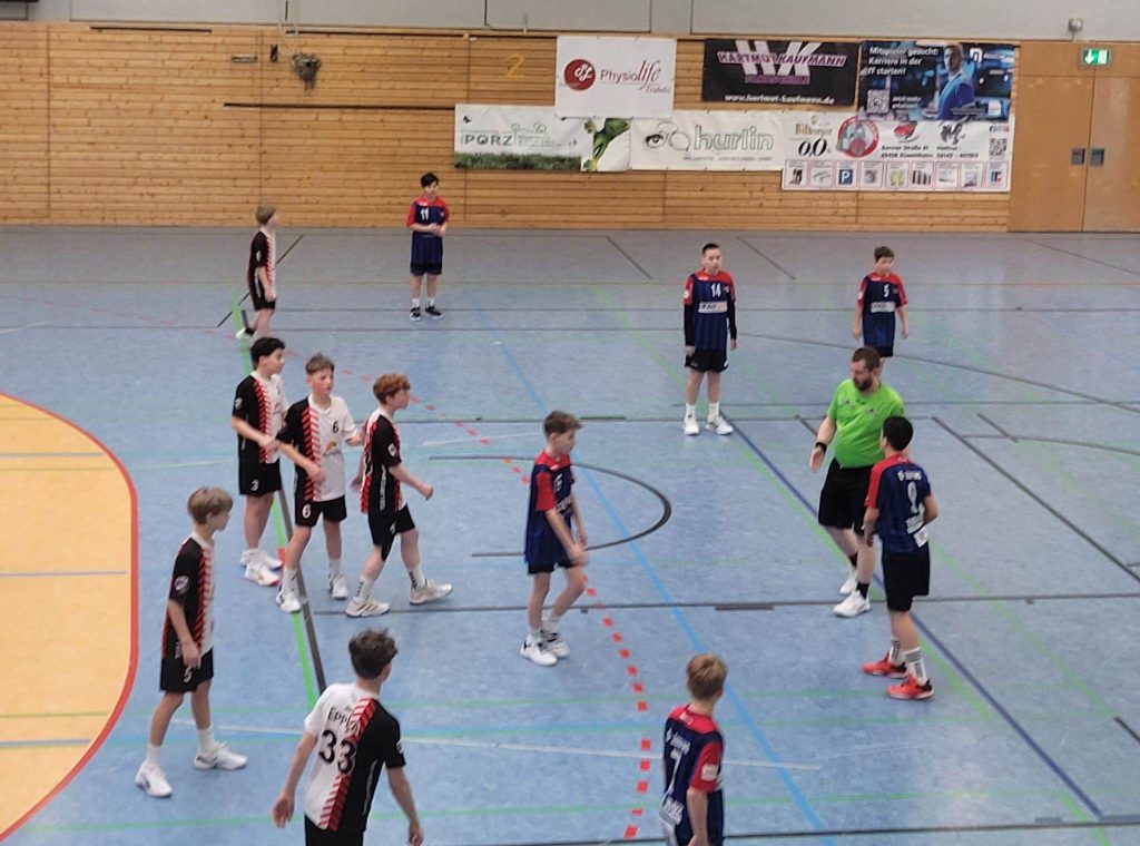 Die EppLa-Jungs arbeiteten sich dann aber Stück für Stück in die Partie hinein. Die Abwehr: wach, aufmerksam, ballhungrig. Die Chancenverwertung: sagen wir… kreativ. Entweder hielt der starke TG‑Torwart stark oder der Ball suchte sich spontan ein neues Ziel – Wand, Latte, Halle. Schön herausgespielt waren die Angriffe trotzdem, oft mit gutem Blick für den besser postierten Mitspieler. Zur Halbzeit hieß es 9:13, hätte aber auch 9:20 stehen können (oder müssen…).
